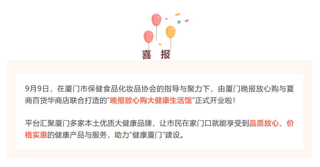 廈門(mén)晚報放心購大健康生活館正式開(kāi)業(yè)啦!思健蜂膠等系列大健康保健食品受邀入駐