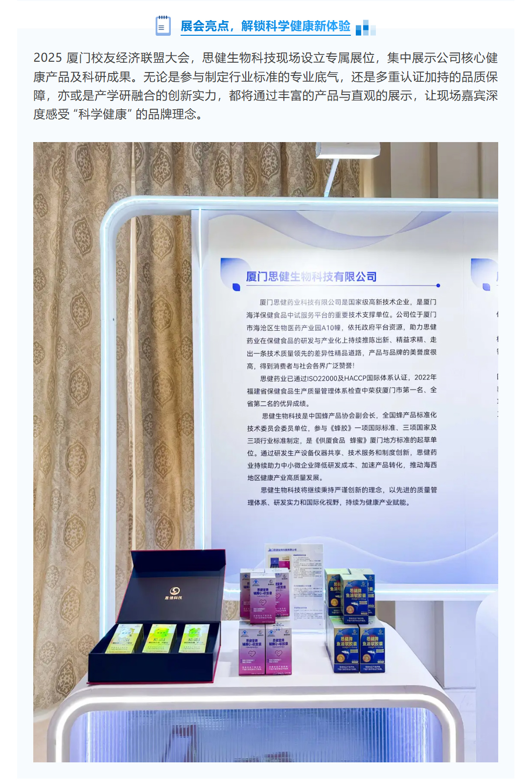 校友經(jīng)濟聚力,健康科技同行!思健生物科技受邀參展 2025 廈門(mén)校友經(jīng)濟聯(lián)盟大會(huì ),解鎖科學(xué)健康新體驗