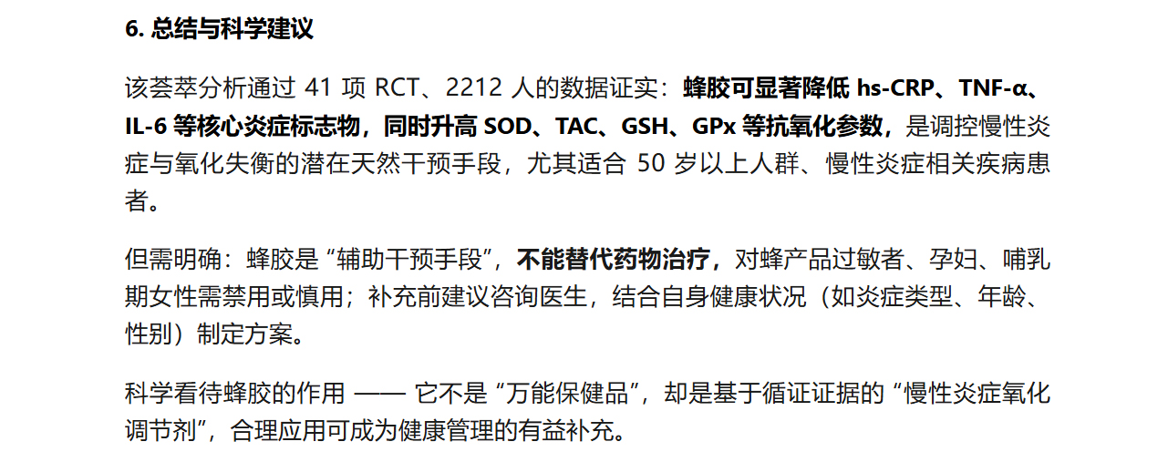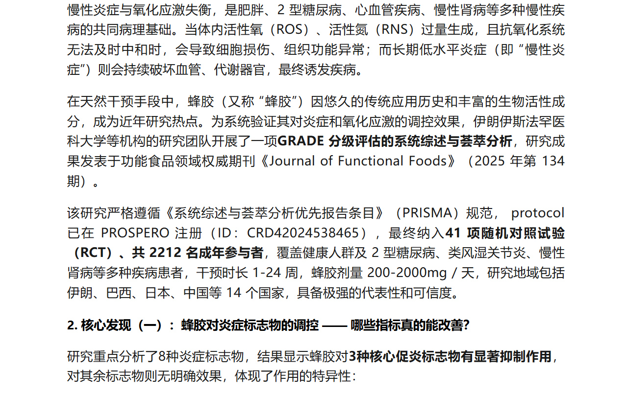蜂膠與炎癥、氧化應激:基于 41 項臨床試驗的權威科普解析